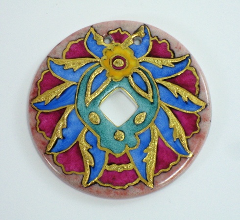 Pendentif représentant une fleur aux pétales bordés d'or en relief