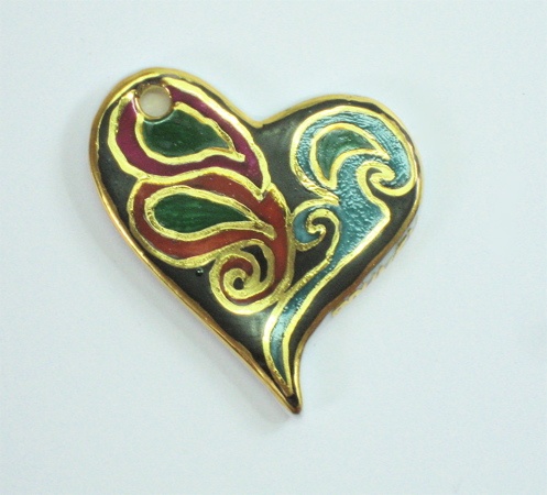 Pendentif représentant un coeur aux motifs abstraits bordés d'or