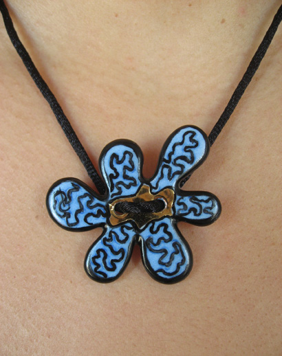 Pendentif au motif abstrait. Le centre est peint en or