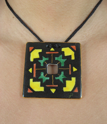 Pendentif aux motifs géométriques. Le bord est peint en or