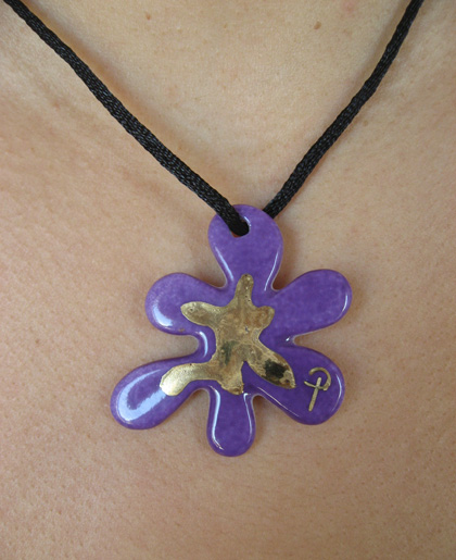 Pendentif aux motifs abstraits. Le centre est peint en or