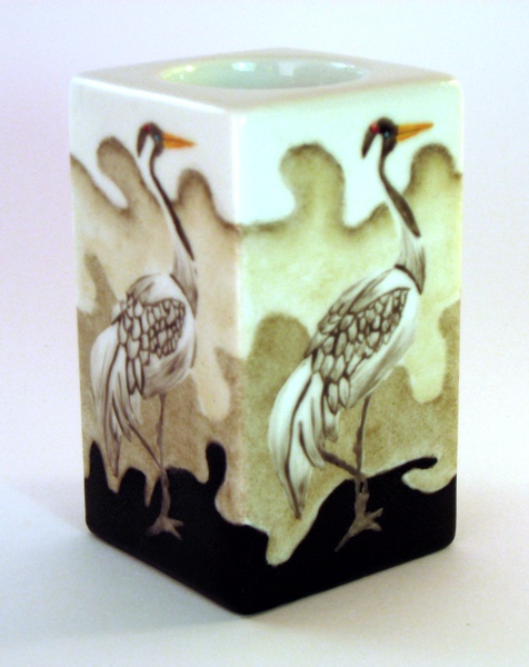 Bougeoir pour bougie chauffe-plat, représentant un héron japonnais