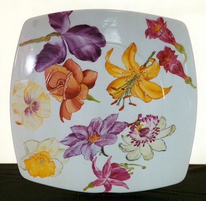 Orné de fleur diverses, ce plat peut également être utilisé comme objet de décoration.