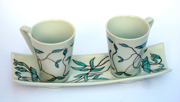 Service de 2 tasses à café avec leur plateau